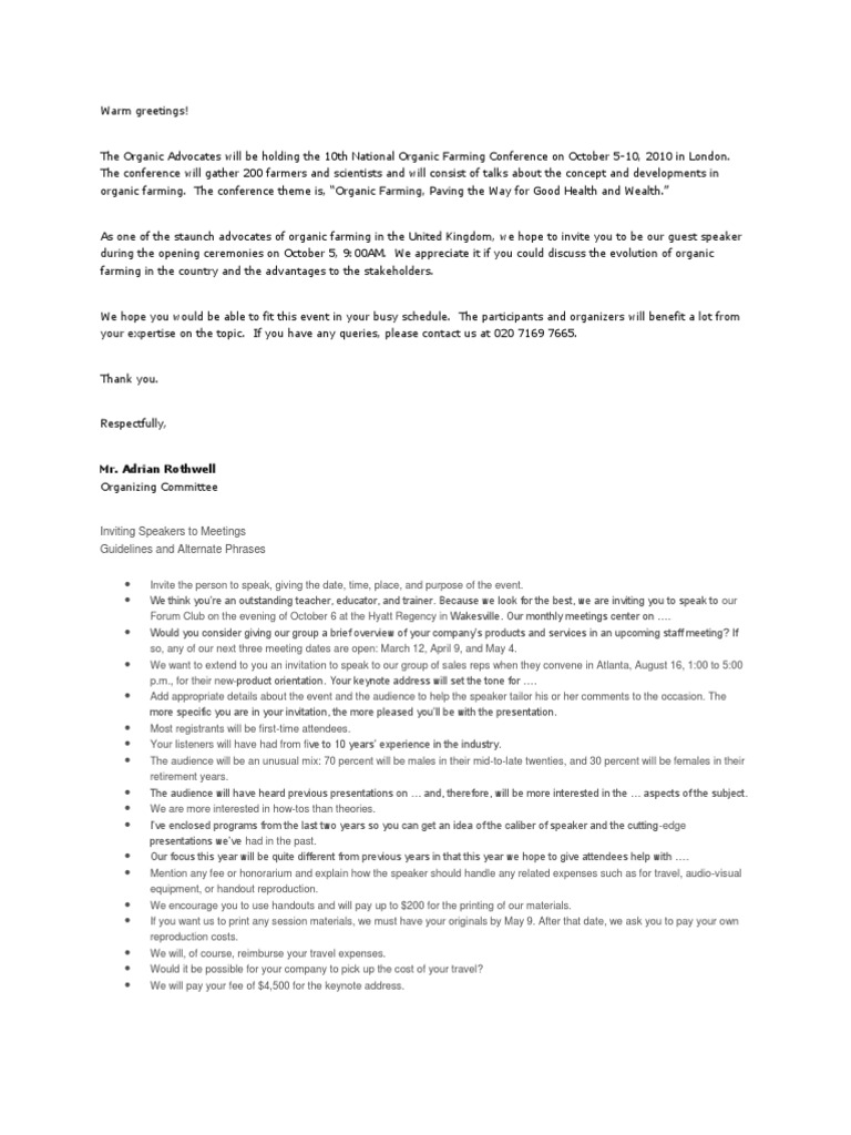 Sample Invitation Letter Format For Keynote Speech Assignment Point